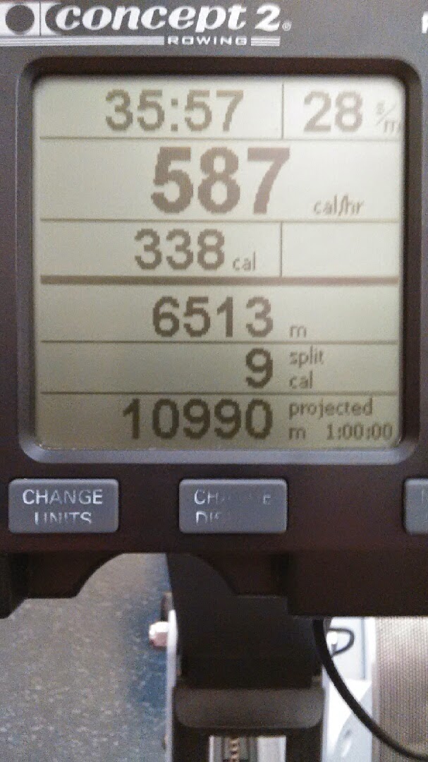 35:57 min Rowing = 6,513 meters = 3.6 miles